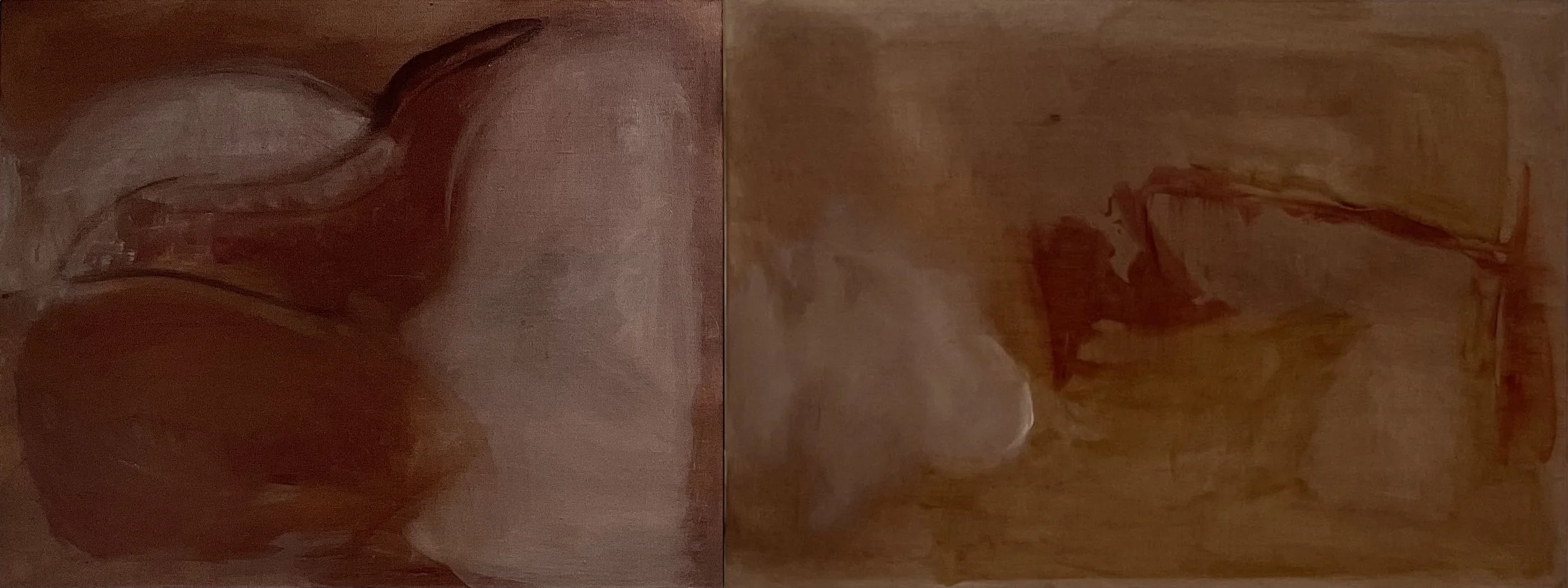 After Breath, Oil on linen, Diptych, 185 x 70 cm (85 x 70 cm, 100 x 70 cm), 2025